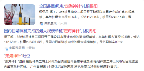 近日,“全国最重单桩”、风电“定海神针”等信息刷爆网络,这就是来自广东省揭阳市神泉二350MW海上风电项目(以下简称“神泉二项目”)的第10根桩基,也是目前国内最大、最重单桩。