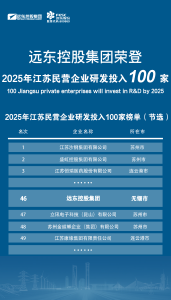 10月12日,2025江苏民营企业百强发布活动在徐州举行。省委常委、省委统战部部长胡广杰出席活动并讲话,省委统战部副部长、省工商联党组书记刘军主持活动。省发改委、省科技厅、省工信厅,省工商联有关领导,及各设区市工商联负责领导,百强民营企业代表等参加活动。会上,省工商联主席刘聪发布江苏民营企业百强系列榜单,远东分别荣登2025江苏民营企业200强第22位、2025江苏民营制造业100强第17位以及2025江苏民营企业研发投入100家第46位!