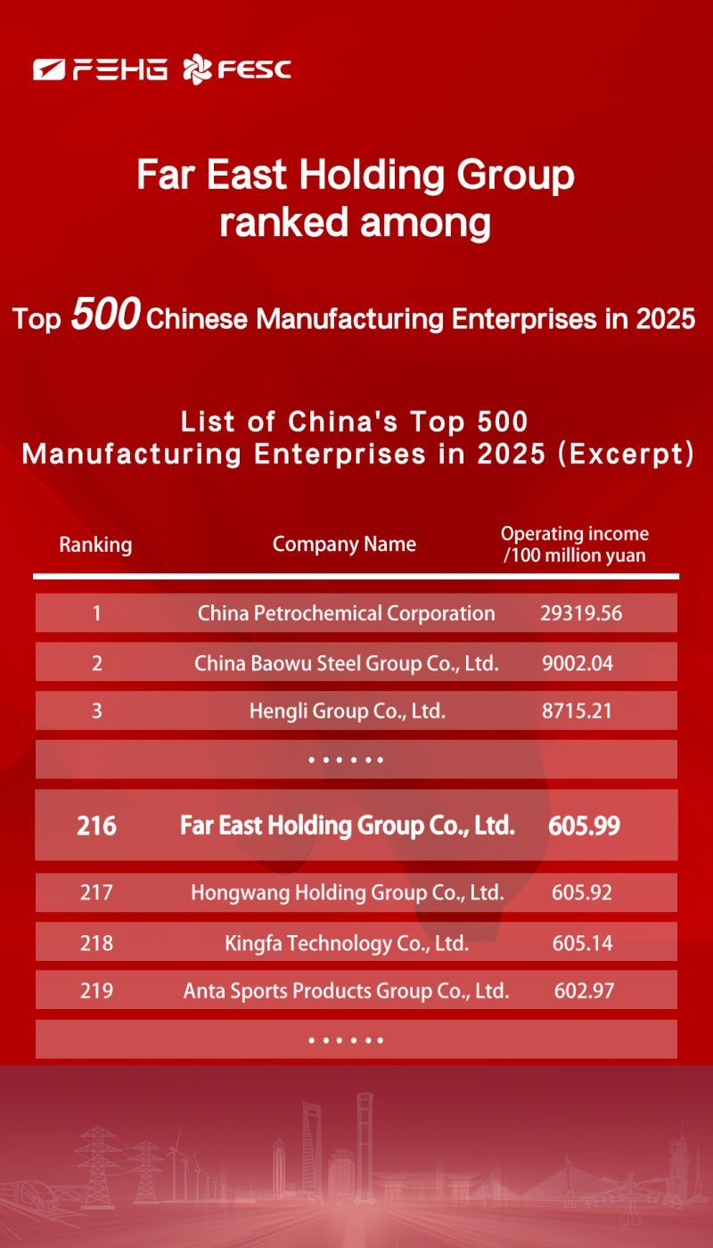 Warm congratulations to Far East Holding Group for being named one of China’s Top 500 Enterprises!